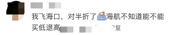 另外,有网友表示,自己买了9月30日宁波到海口的机票,加上燃油总计1435元,结果现在机票单价跌到700元,几乎差了一半,感叹买得太早。