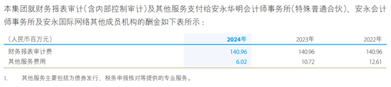 事实上,建行的财务审计费用连续多年都是14,096万元。在审计费之外,建行就其他服务向安永支付费用,其中2024年支付了602万元。